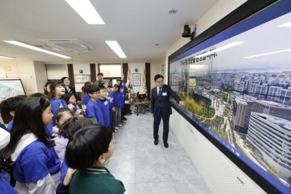 학생들은 '1일 구청장' 체험을 통해 구청장실 전자상황판으로 고도제한 완화, 재개발·재건축 등 구의 주요 현안을 확인하며 행정이 실제 지역 변화와 어떻게 연결되는지 체감했다.