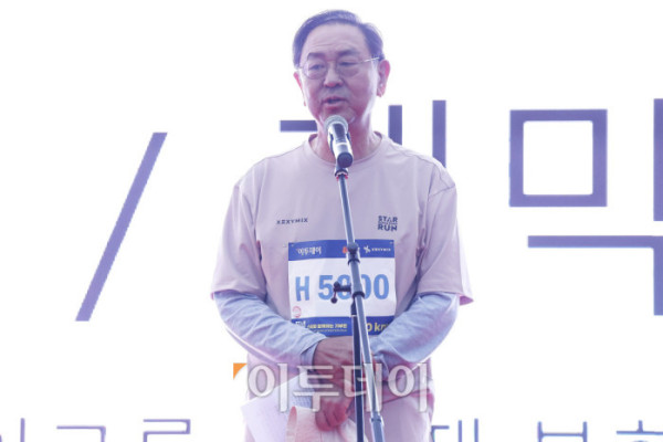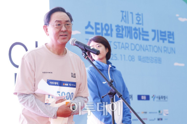 ▲이종재 이투데이그룹 부회장이 8일 서울 광진구 뚝섬한강공원 수변무대 일대에서 열린 ‘제1회 스타와 함께하는 기부런’ 개막행사에서 대회사를 하고 있다. 이투데이가 주최한 이번 행사는 '달리기를 통해 건강과 상생의 문화를 만들자'는 슬로건 아래, 시민들의 일상 속 스포츠 활동을 기부와 연결해 사회적 가치를 창출하기 위해 마련됐다. 평소 많은 기부와 선행을 하며 선한 영향력 확산에 앞장서는 가수 션 등과 시민 5000여 명이 함께한 ‘스타와 함께하는 기부런’ 수익금 일부는 루게릭 환우를 위해 ‘승일희망재단’에 기부된다. 조현호 기자 hyunho@