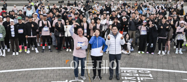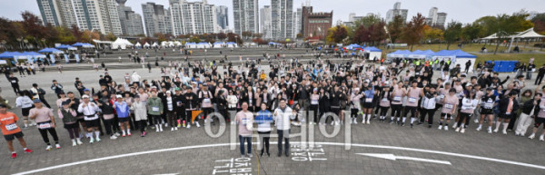 ▲이종재(앞줄 가운데) 이투데이그룹 부회장과 고민정 더불어민주당 의원, 오신환 국민의힘 광진을 당협위원장이 8일 서울 광진구 뚝섬한강공원 수변무대 일대에서 열린 ‘제1회 스타와 함께하는 기부런’에서 개막행사를 마친 후 참가자들과 기념촬영을 하고 있다. 이투데이가 주최한 이번 행사는 '달리기를 통해 건강과 상생의 문화를 만들자'는 슬로건 아래, 시민들의 일상 속 스포츠 활동을 기부와 연결해 사회적 가치를 창출하기 위해 마련됐다. 평소 많은 기부와 선행을 하며 선한 영향력 확산에 앞장서는 가수 션 등과 시민 5000여 명이 함께한 ‘스타와 함께하는 기부런’ 수익금 일부는 루게릭 환우를 위해 ‘승일희망재단’에 기부된다. 조현호 기자 hyunho@