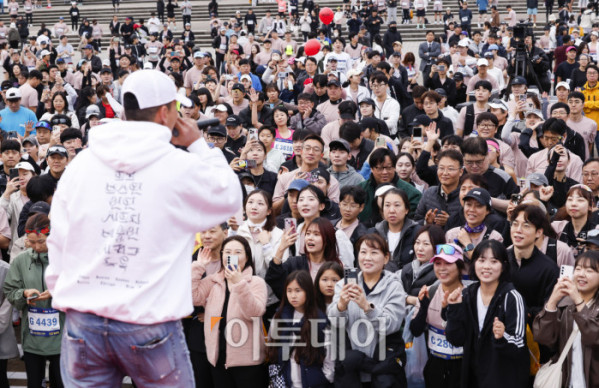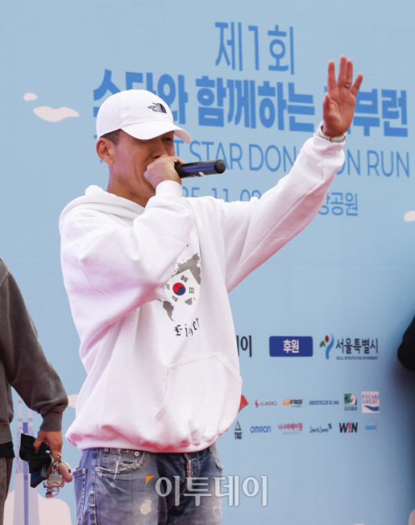 ▲가수 션이 8일 서울 광진구 뚝섬한강공원 수변무대 일대에서 열린 ‘제1회 스타와 함께하는 기부런’에서 축하공연을 하고 있다. 이투데이가 주최한 이번 행사는 '달리기를 통해 건강과 상생의 문화를 만들자'는 슬로건 아래, 시민들의 일상 속 스포츠 활동을 기부와 연결해 사회적 가치를 창출하기 위해 마련됐다. 평소 많은 기부와 선행을 하며 선한 영향력 확산에 앞장서는 가수 션 등과 시민 5000여 명이 함께한 ‘스타와 함께하는 기부런’ 수익금 일부는 루게릭 환우를 위해 ‘승일희망재단’에 기부된다. 조현호 기자 hyunho@