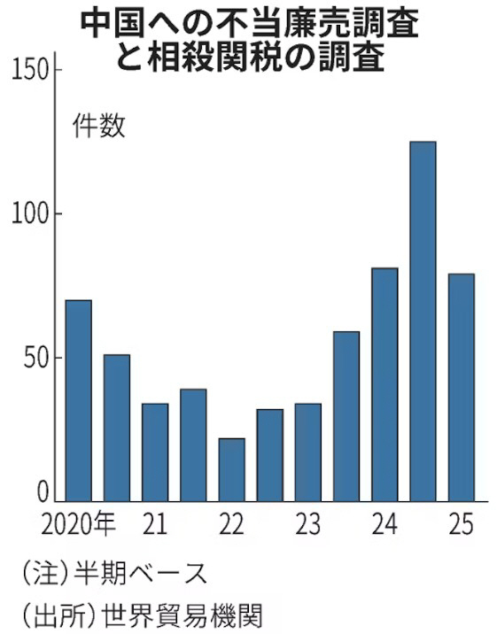 WTO에 따르면 올해 상반기 중국산 제품을 대상으로 한 반덤핑 및 상계관세 조사는 총 79건에 달한다. 2023년 상반기까지만 해도 20~30건대에 머물렀으나 작년 하반기에는 125건까지 급증했다. 올 들어서도 높은 수준을 유지하고 있다.
