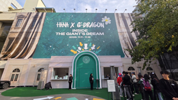 오후 2시 무렵 거리 초입부터 팝업스토어 입구까지 대기 줄이 길게 이어졌다. 지드래곤이 직접 디자인한 유화 데이지 아트와 하나카드의 상징색으로 물든 건물 앞에서 사람들은 입장을 기다리며 셀카를 찍고 분위기를 즐겼다.