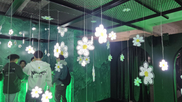 초록색 아치형 입구를 지나면 가장 먼저 '체크카드 존'이 나타난다. 이 공간에서 특수 제작된 안경을 착용하면 조명이 모두 하트 모양으로 굴절돼 보이는 이색 체험을 할 수 있다. 환하게 늘어선 전구 사이사이에는 '희망', '행복' 같은 단어가 적힌 작은 팻말이 놓여 있어 일행과 함께 온 방문객들은 미소를 머금은 채 사진을 찍었다.