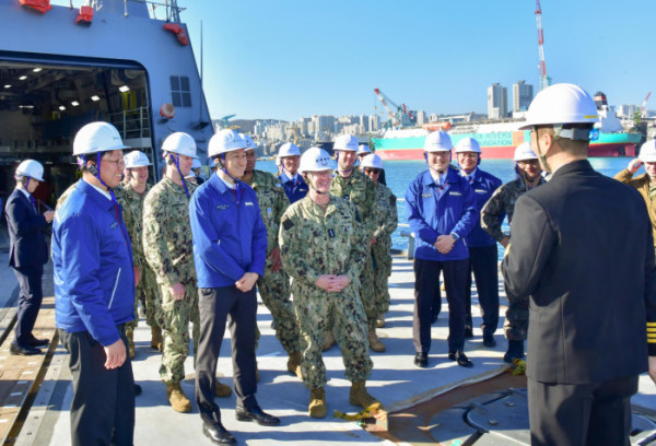 이후 커들 총장은 정 회장의 안내를 받아 상선 건조 현장을 둘러 본 후 세계 최정상급 이지스 구축함 등 함정을 건조하는 HD현대중공업 함정·중형선사업부를 방문했다.