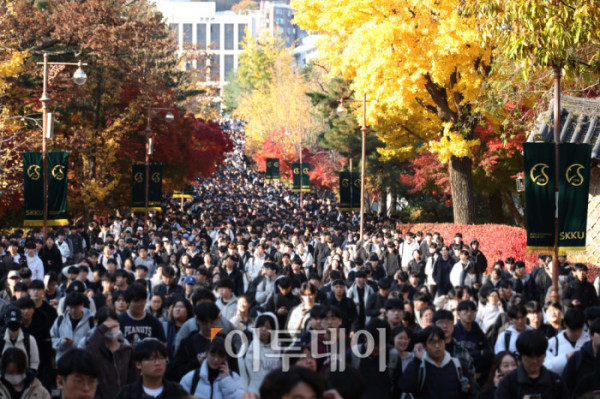 2026학년도 대입 수시모집 논술시험이 열린 16일 서울 종로구 성균관대에서 수험생들이 시험을 마치고 고사장을 나오고 있다. 고이란 기자 photoeran@