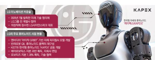 또 LG전자는 한국과학기술연구원(KIST) 및 LG AI연구원과 함께 한국형 차세대 휴머노이드 ‘케이팩스(KAPEX)’도 만들고 있다. KAPEX는 단순히 인간 동작을 따라하는 것을 넘어 스스로 학습하고 환경 변화에 적응해 사람과 협업까지 할 수 있는 형태로 만들어질 전망이다.