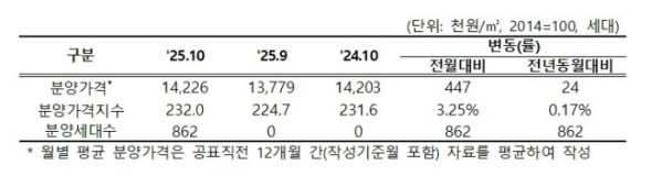 서울의 ㎡당 평균 분양가는 전월 대비 3.25% 오른 1422만6000원으로 조사됐다. 지난해 같은 달 대비로는 0.17% 상승했다. 이를 평(3.3㎡)당으로 환산하면 서울 평균 분양가는 4703만 원이었다.