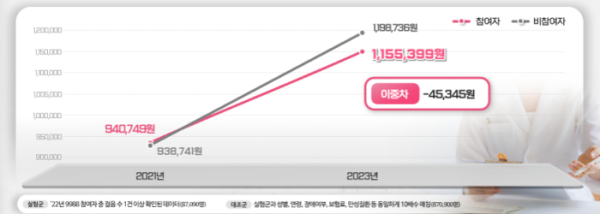 아울러 앱 이용자의 대사증후군 질환 위험 예방 효과도 두드러졌다. 비참여자 대비 참여자의 당뇨 및 고혈압 신규 발생률은 각각 7.9%, 9.1% 감소했다. 허리둘레와 혈당 수치 등 대사증후군 위험 요인도 통계적으로 유의미하게 개선됐다.