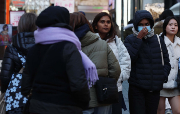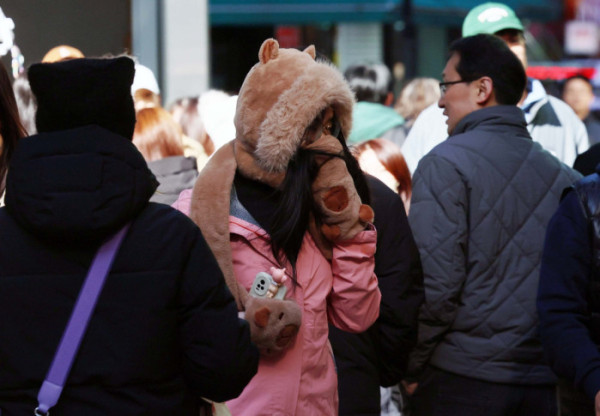 서울 아침 최저기온이 영하 3℃, 춘천이 영하 6℃를 나타내는 등 올 가을 첫 영하권 추위를 보인 18일 서울 명동 거리에서 시민들과 외국인 관광객들이 두꺼운 옷을 입고 발걸음을 옮기고 있다.