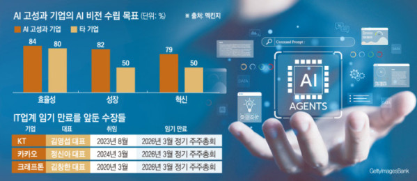 반면 AI 전환기에 빠르게 대응하지 못해 수장이 교체되는 대표적인 사례는 김영섭 KT 대표의 경우다. 김 대표의 임기 만료는 확실시됐다. 이달 4일 열린 이사회에서 연임 포기 의사를 밝히면서다. KT는 현재 대표이사 후보 공개모집을 진행하고 있다. 김 대표의 연임 포기에는 무단 소액결제 사태가 큰 영향을 미쳤지만 일각에선 그의 ‘AI 리더십’에 대한 비판도 나온다.
