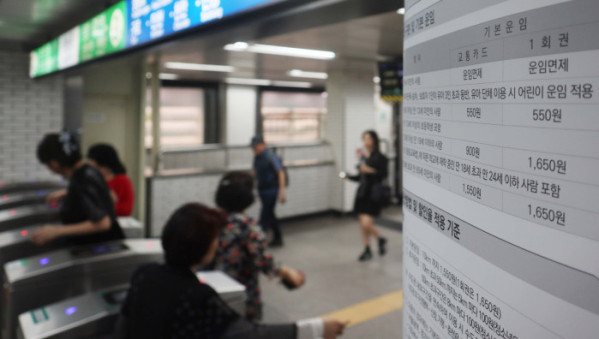 ▲서울의 한 지하철역 개찰구에 요금인상 관련 안내문이 붙어있다. (신태현 기자 holjjak@)