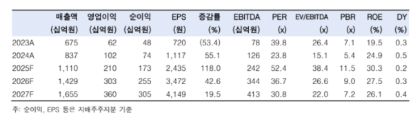 그러면서 “생산능력(CAPA) 제약 상황과 기업의 보수적 CAPA 증설 계획은 아쉽지만, 이는 동시에 수급 불균형의 장기화와 가시적인 혼합평균판매단가(Blended ASP) 상승 배경으로도 해석할 수 있다”며 “AI 인프라 기판 수요는 내년에도 견조할 것이며 5공장 완공 시점이 2027년임을 고려할 때 내년 공급은 제한적일 것”이라고 덧붙였다.