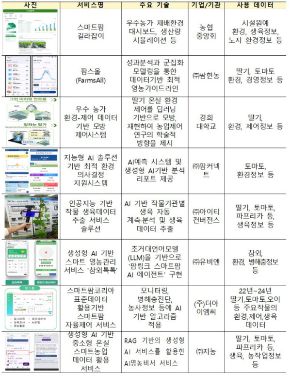 AI 기반 이미지 분석도 성과를 냈다. ㈜아이티컨버전스는 작물 이미지를 AI로 분석해 생육 정보를 자동 계측·추출하는 솔루션을 구현했다. 온실 데이터를 실시간 모니터링해 적정 환경을 제안하는 AI 솔루션을 개발한 팜커넥트, 초거대언어모델(LLM)을 활용해 농작업 기록·병해충 정보 등을 음성으로 관리하는 ‘참외톡톡’을 구현한 ㈜유비엔 역시 주목받았다.