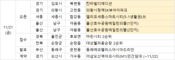 ▲21일 예정된 청약 관련 일정 표 (부동산R114)