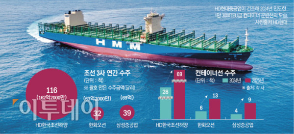 삼성중공업도 최근 아시아 지역 선주로부터 컨테이너선 7척을 약 1조9220억 원에 수주하며 컨테이너선 중심 수주 흐름에 합류했다. 한화오션도 올해 수주한 32척 중 13척이 컨테이너선으로 40%의 비중을 차지했다.