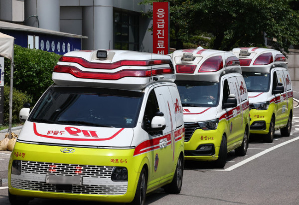 ▲2024년 8월 9일 서울 시내의 한 대학병원 응급실 앞에 구급차들이 대기하고 있다. (뉴시스)