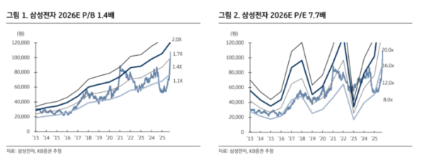 KB증권은 삼성전자의 내년 영업이익을 전년 대비 108% 증가한 97조 원으로 추정했다. 특히 올해 4분기 영업이익은 전년 대비 192%, 전 분기 대비 56% 증가한 19조 원에 이를 것으로 내다봤다. 반도체(DS) 부문 영업이익만 15조 원 수준으로 전년 대비 5배 이상 급증할 것으로 예상했다.