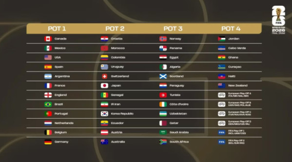 포트4는 플레이오프(PO)를 거쳐 본선 진출 여부가 결정되는 국가들이 포함돼 변수로 꼽힌다. 요르단(66위), 카보베르데(68위), 가나(72위), 퀴라소(82위), 아이티(84위), 뉴질랜드(86위)와 함께 대륙 간 PO 승자 2팀, UEFA PO 승자 4팀이 포트4에 배정된다.