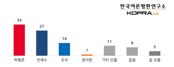 KOPRA는 "현직 프리미엄을 갖춘 박 시장이 우세하지만, 전 장관의 추격 속도가 뚜렷하다"고 분석했다.