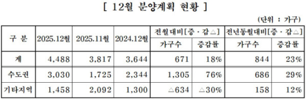 대한주택건설협회는 회원사를 대상으로 12월 주택분양계획을 집계한 결과 14개사가 11개 사업장에서 총 4488가구를 공급하는 것으로 파악됐다고 27일 밝혔다. 전월보다 671가구 전년 동기와 비교하면 844가구 증가한 수치다.