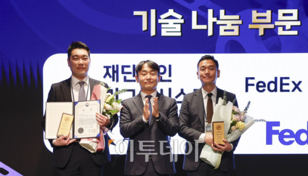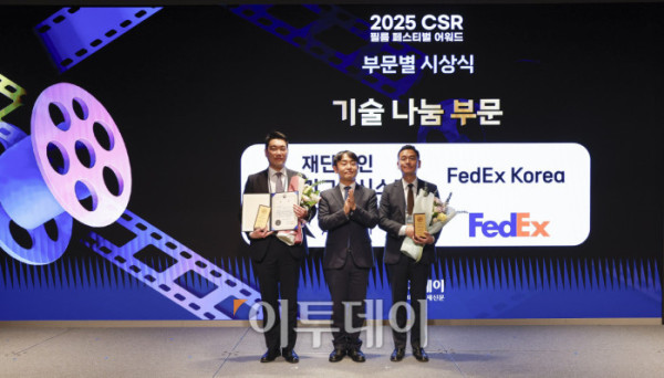 ▲27일 서울 강남구 더 웨스틴 서울 파르나스 호텔에서 열린 '2025 CSR 필름 페스티벌 어워드’에서 이종권(왼쪽) 재단법인 케이리그어시스트 사무국장과 박원빈(오른쪽) FedEx Korea 대표가 우성훈 산업통상부 산업일자리혁신과장에게 산업통상부장관상 기술 나눔 부문을 수상한 뒤 기념촬영을 하고 있다. 경제신문 이투데이가 주최한 이 행사는 한 해 동안 사회적 가치 창출을 위한 CSR 활동 발자취를 공모하고 그 업적을 격려하기 위해 마련된 자리로 2012년 첫걸음을 내디뎌 올해로 14회째를 맞이했다. 조현호 기자 hyunho@