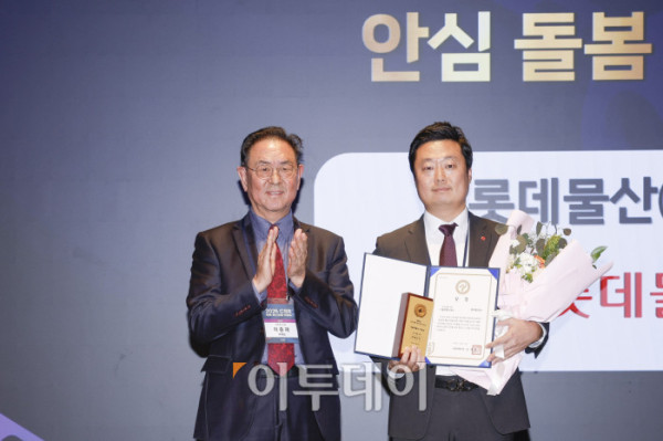 27일 서울 강남구 더 웨스틴 서울 파르나스 호텔에서 열린 '2025 CSR 필름 페스티벌 어워드’에서 서규하(오른쪽) 롯데물산 부문장이 이종재 이투데이그룹 부회장에게 서울특별시장상 안심 돌봄 부문을 수상한 뒤 기념촬영을 하고 있다. 경제신문 이투데이가 주최한 이 행사는 한 해 동안 사회적 가치 창출을 위한 CSR 활동 발자취를 공모하고 그 업적을 격려하기 위해 마련된 자리로 2012년 첫걸음을 내디뎌 올해로 14회째를 맞이했다. 조현호 기자 hyunho@