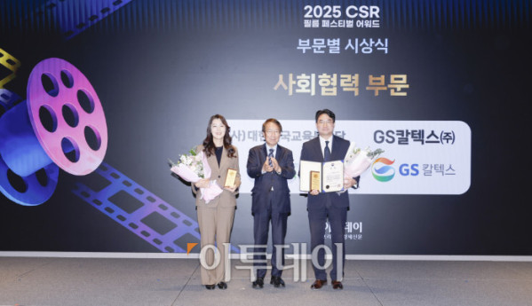 27일 서울 강남구 더 웨스틴 서울 파르나스 호텔에서 열린 '2025 CSR 필름 페스티벌 어워드’에서 김성중(오른쪽) 대한민국교육봉사단 대표와 정원엽 GS칼텍스 팀장이 대회위원장인 정운찬 전 국무총리에게 행정안전부장관상 사회협력 부문을 수상한 뒤 기념촬영을 하고 있다. 경제신문 이투데이가 주최한 이 행사는 한 해 동안 사회적 가치 창출을 위한 CSR 활동 발자취를 공모하고 그 업적을 격려하기 위해 마련된 자리로 2012년 첫걸음을 내디뎌 올해로 14회째를 맞이했다. 조현호 기자 hyunho@