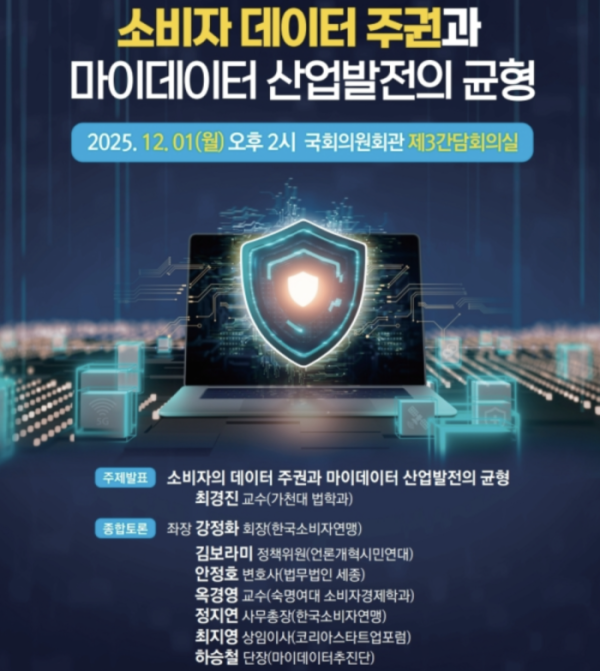 강준현·이정문 의원이 공동 주최하고 한국소비자연맹이 주관하는 '소비자 데이터 주권과 마이데이터 산업발전의 균형' 국회 포럼이 12월 1일 오후 2시 국회 의원회관 제3간담회의실에서 열린다.