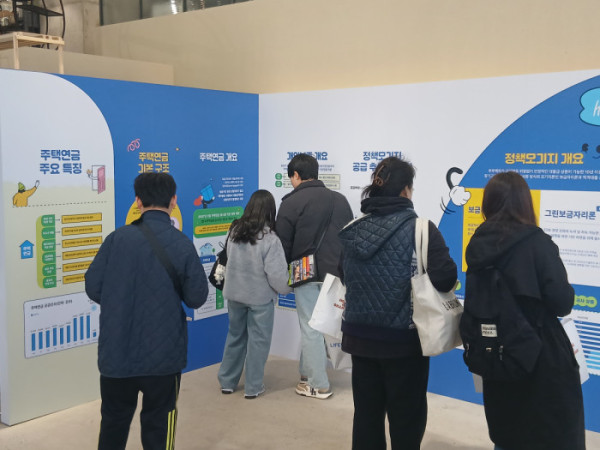 입구에 들어서자 가장 먼저 전시존이 관람객을 맞았다. 벽면에는 주택연금, 전세자금보증 등 공사의 주요 사업과 보금자리론 등 대표 정책모기지 상품이 그래픽으로 알기 쉽게 정리돼 있었다.