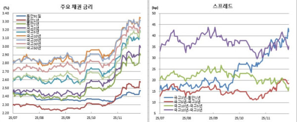 국고3년물 3% 돌파 하룻만 다시 2%대..국고10년-3년물간 장단기금리차 6거래일만 확대