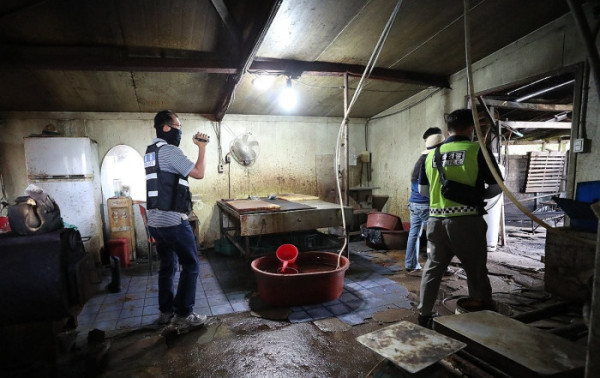 ▲제주도에서 말을 불법 도축 현장 조사하는 경찰. (사진제공=연합뉴스)