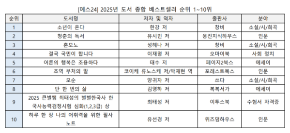 아울러 한국소설로는 '2024 젊은 작가 투표 1위'를 차지한 성해나 작가의 '혼모노'가 3위, 양귀자 작가의 '모순'이 7위에 올랐다.