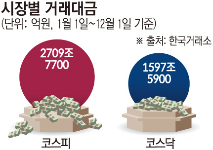 상반된 시장 상황은 수급에서도 차이난다. 올해 기관 자금은 코스피에서 삼성전자ㆍSK하이닉스 등 대형주를 중심으로 13조 원 넘게 순매수했지만, 코스닥에서는 6290억 원 순매도했다.