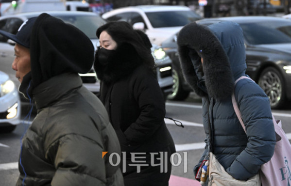 기상청에 따르면 이날 아침 최저기온은 -14~0도, 낮 최고기온은 0~9도로 평년보다 낮겠다. 특히 경기 내륙과 강원 내륙·산지는 -15도 안팎, 그 밖의 중부 내륙과 경북 북부 내륙·북동 산지는 -10도 안팎까지 떨어지겠다.