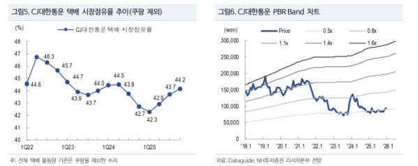 택배업계 정책 변수와 관련해서는 “새벽배송 금지 가능성은 낮지만 분류 인력 확대, 자동화 투자, 노동환경 개선 등이 논의될 것”이라며 “중장기적으로 단가 상승 흐름이 재차 나타날 여지도 있다”고 설명했다.