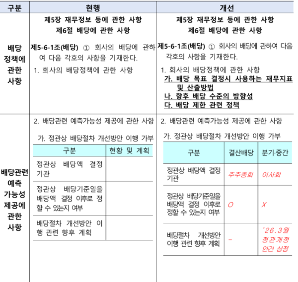 배당정책 세분화·절차 개선 이행 여부 명확히 적도록 서식 개편
