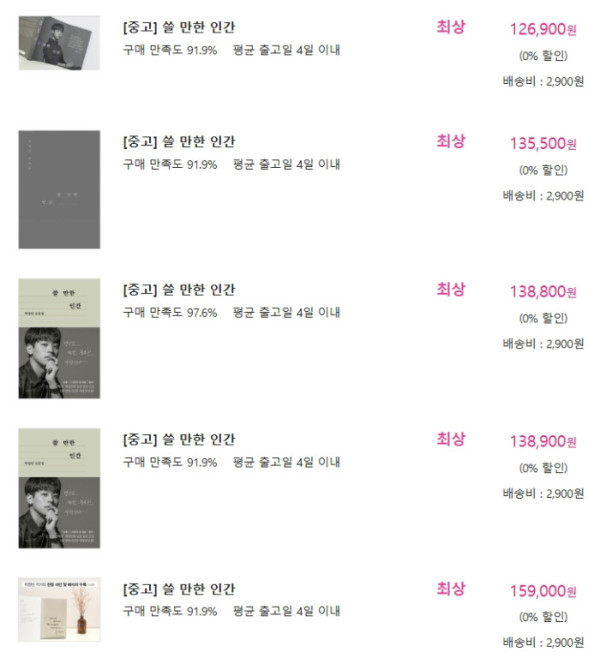 4일 도서 판매 플랫폼 예스24와 알라딘에 따르면 ‘쓸 만한 인간’ 중고 책은 최소 10만 원부터 많게는 20만 원까지 가격이 책정돼 있다. 판매자 대부분은 13만 원대로 가격을 설정해놨다.