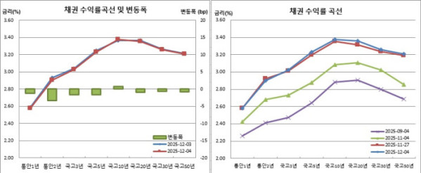한국은행 기준금리(현 2.50%)와 국고3년물간 금리차는 52.5bp로 좁혀졌다. 국고10년물과 3년물간 장단기금리차는 2.4bp 확대된 35.1bp를 기록했다.