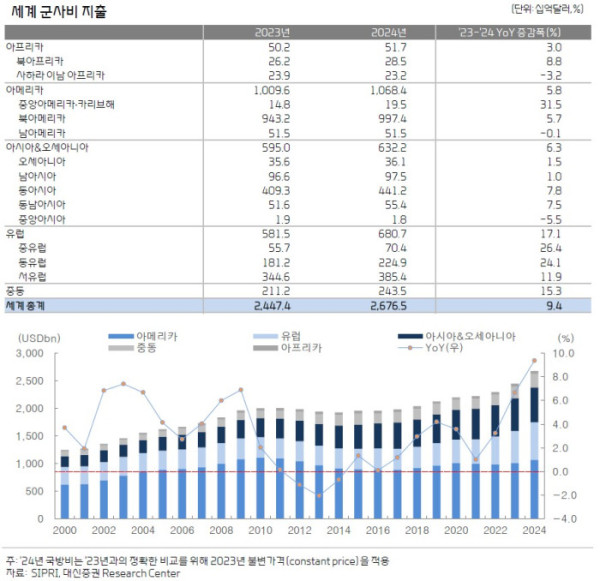 2026년 방산 수출 시장은 유럽과 중동 지역이 주도할 것으로 예상된다. 러시아-우크라이나 전쟁을 계기로 무기 도입에 소극적이던 유럽 지역의 무기도입비 비중이 크게 상승하고 있다. 유럽의 전차와 장갑차 생산 능력은 억지력 확보를 위한 최소 시나리오에 필요한 목표치에 크게 미달하는 등 고질적인 공급 부족 현상을 겪고 있어, 한국 방산이 ‘구원 투수’ 역할을 할 전망이다.