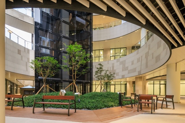 외관은 어두운 톤의 주조색과 보조색을 사용해 차분하고 고급스러운 이미지를 연출했다. 커튼월 유리 마감과 태양광발전시스템(BIPV), 저층부 벽돌과 석재 등 다양한 질감의 소재 조합으로 묵직한 대비감을 구현했다. 내부 포디움 공간에는 아이보리 톤의 석재 마감과 밝은 조명, 곡선형 아치 디자인을 적용해 단지 전반에 리듬감과 생기를 더했다. 입주민과 지역 주민 모두가 이용할 수 있는 열린 공간으로 구성된 점도 높은 평가를 받았다.