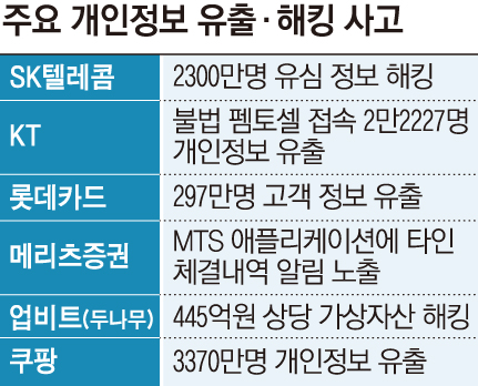7일 본지 취재를 종합하면 개인정보 유출 방식은 빠르게 다양화·고도화되고 있다. 과거 외부 침입 중심이었던 공격은 최근 내부 계정 탈취, 내부자 매수 등 ‘문 안쪽’의 취약점을 노리는 방식으로 진화했다. 쿠팡 사태의 경우 퇴사자의 접근 권한이 장기간 유지되는 관리 구멍을 통해 내부에서 정보가 반출된 것으로 파악됐다. 최병호 고려대 AI연구소 교수는 “해킹의 마지막 단계는 내부자 장악”이라며 “대규모 데이터를 결합해 활용하는 플랫폼일수록 해커들에겐 더 매력적인 목표물이 된다”고 말했다.