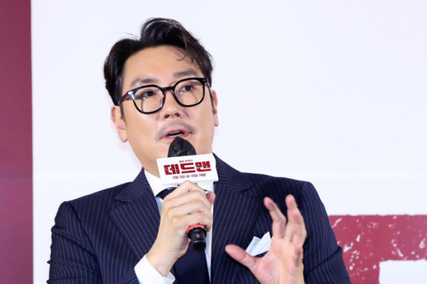 ▲배우 조진웅이서울 성동구 메가박스 성수에서 열린 영화 '데드맨'(감독 하준원) 제작보고회에서 인사말을 하고 있다. (뉴시스)