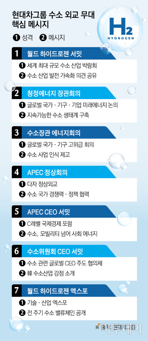 APECㆍCEO서밋ㆍWHE 총출동⋯현대차그룹, 수소 리더십 ‘선도’ [ET의 모빌리티]