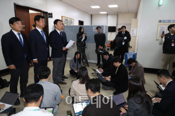 ▲국회 법사위 법안심사제1소위원회장인 김용민 더불어민주당 의원 8일 서울 여의도 국회에서 회의 결과를 브리핑하고 있다. 고이란 기자 photoeran@