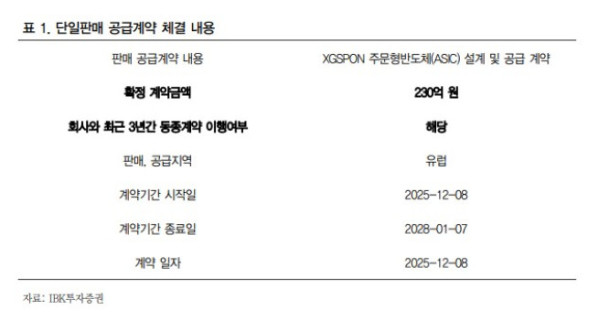 그는 "전날 자람테크놀로지가 공시한 XGSPON 설계, 공급 계약은 2023년 프로젝트를 기반으로 추가 기능(Wi-Fi 지원)이 탑재된 진일보한 프로젝트"라며 "계약금액도 230억 원으로 2023년 165억 원보다 약 40% 증가했으며 이는 고객사가 자람테크놀로지의 반도체 개발 능력을 공식적으로 인정한 것으로 판단된다"고 전했다.