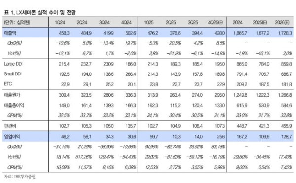 ▲LX세미콘 실적 추이. (출처=IBK투자증권)