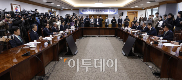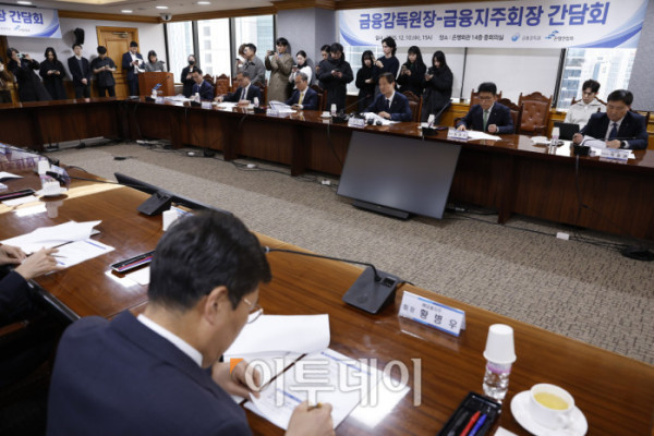▲이찬진 금융감독원장이 10일 서울 중구 은행연합회에서 열린 금융감독원장-금융지주회장 간담회에 참석하고 있다. 조현호 기자 hyunho@