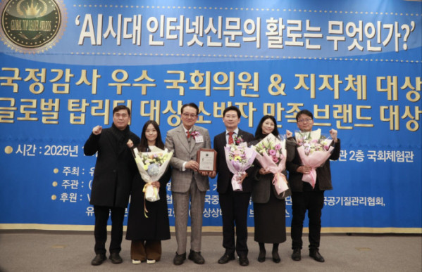 ▲이상일 용인특례시장이 국회 박물관에서 열린 ‘글로벌 탑리더 대상’ 시상식에서 지자체 부문 대상을 받고 기념촬영을 하고 있다. (김재학 기자)