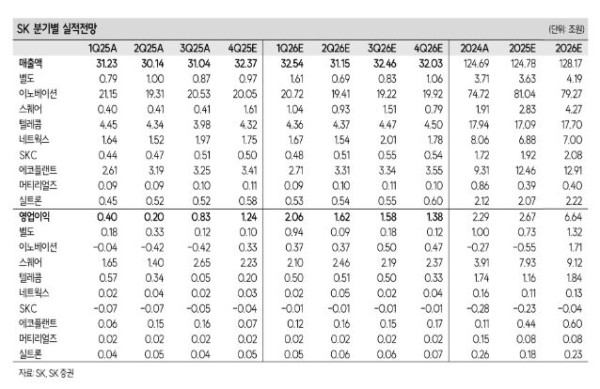 SK는 지난해부터 포트폴리오에 대한 선택과 집중, 재무구조 개선을 위해 리밸런싱을 진행하고 있다. 최 연구원은 “향후 SK실트론, 론디안 왓슨 등을 매각예정자산으로 분류하고 있는 만큼 리밸런싱을 통한 재무구조 개선효과는 2026년에도 지속할 전망”이라고 내다봤다.