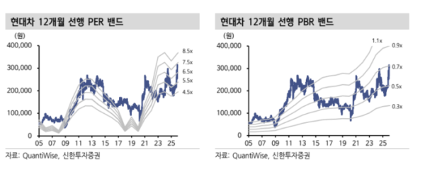 박 연구원은 “관세 리스크 완화와 AI 기대감 확산에도 현대차의 주가수익비율(PER)은 7배 수준에 머물러 있다”며 “AI·로봇 등 신사업의 가치가 반영되면 중장기 리레이팅(재평가) 가능성이 높다”고 전망했다.
